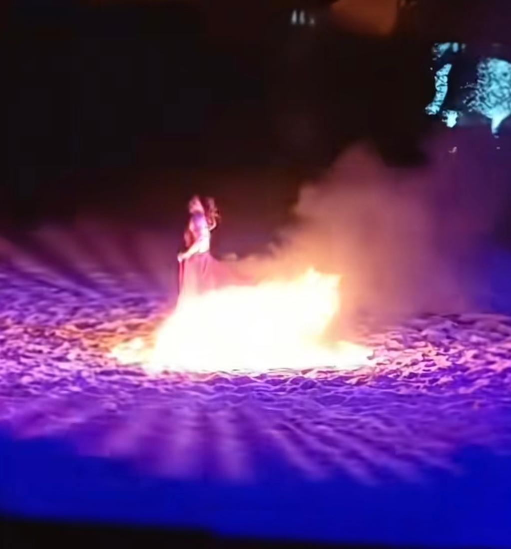 视频线路,别称女性演员在饰演“火裙舞”时,裙子边际被铁圈上的火烽火。女子尝试解开裙子未果,开云体育app随后驰驱跳进傍边的浅水滩中将火扑灭。