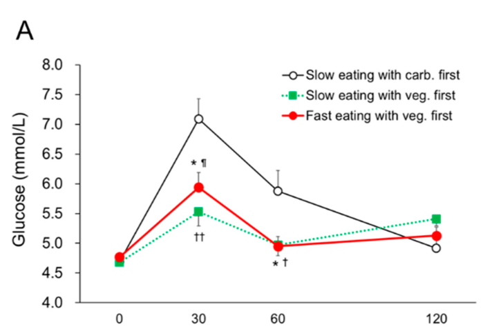 2023年发表在《养分素》上的一项商讨走漏,摄入一样的食品,先吃蔬菜再吃主食,能改善餐后血糖和胰岛素水平。