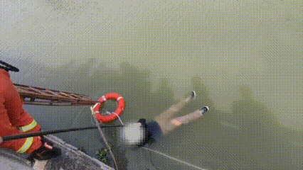 别称消防员架设拉梯下到岸边