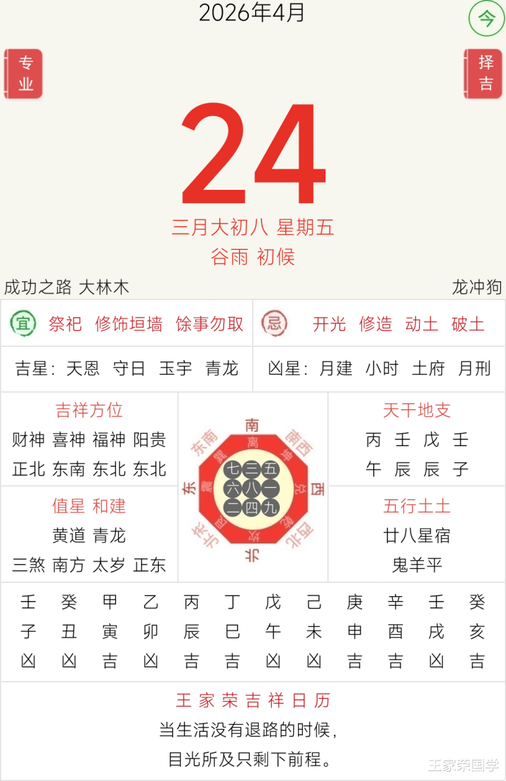 逐日顺应:祭祀 修饰垣墙 馀事勿取
