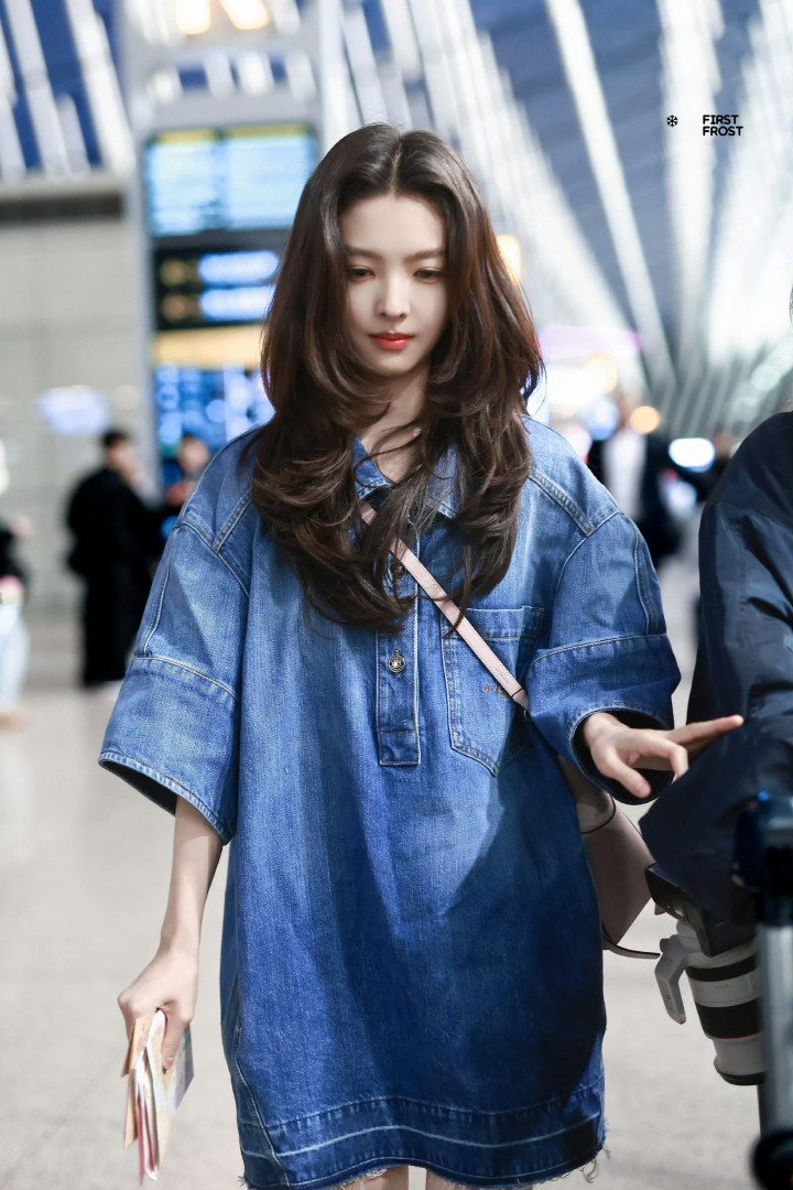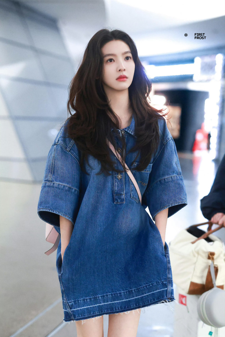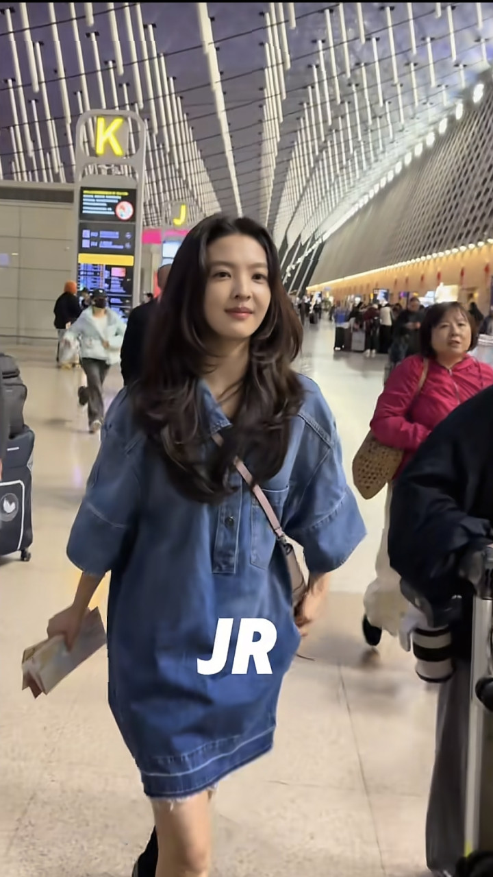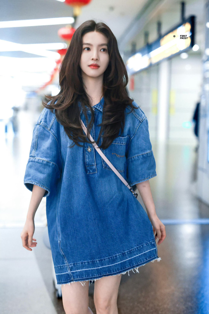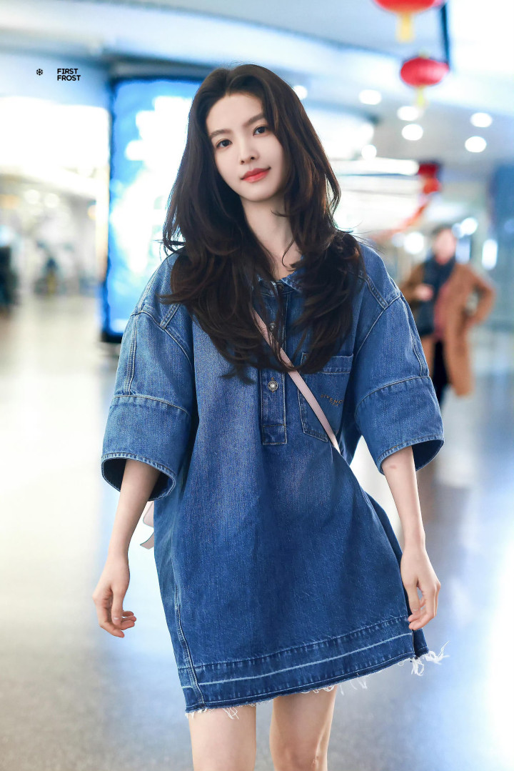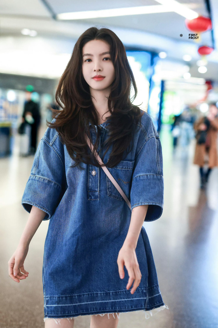 开云app 淡妆超好意思! 章若楠现身机场, 牛仔短裙配大海浪, 大好意思女景况好好呀