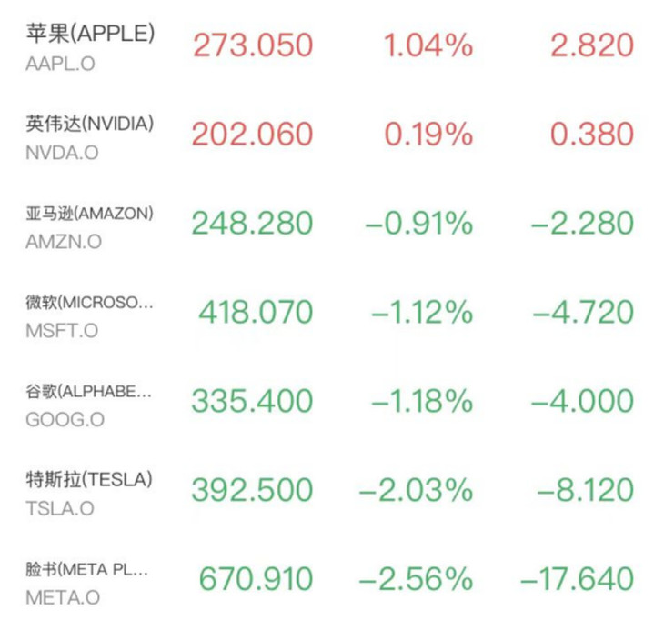 明星科技股跌多涨少,Meta跌2.56%,散伙了贯穿九个往改日上升的势头,这是该公司自客岁10月以来最长的连涨记载。苹果涨1.04%,英伟达涨0.19%,亚马逊跌0.91%,微软、谷歌和特斯拉跌超1%。